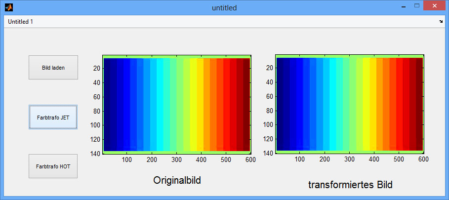 Wenn der Button z.B. FarbtrafoJET gedrückt wird, ändert sich auch das Originalbild. Das Originalbild soll weiterhin unverändert im axes1 Objekt angezeigt werden. Daneben soll das transformierte Bild im axes2 Objekt angezeigt werden.