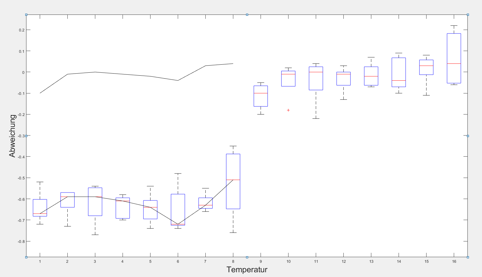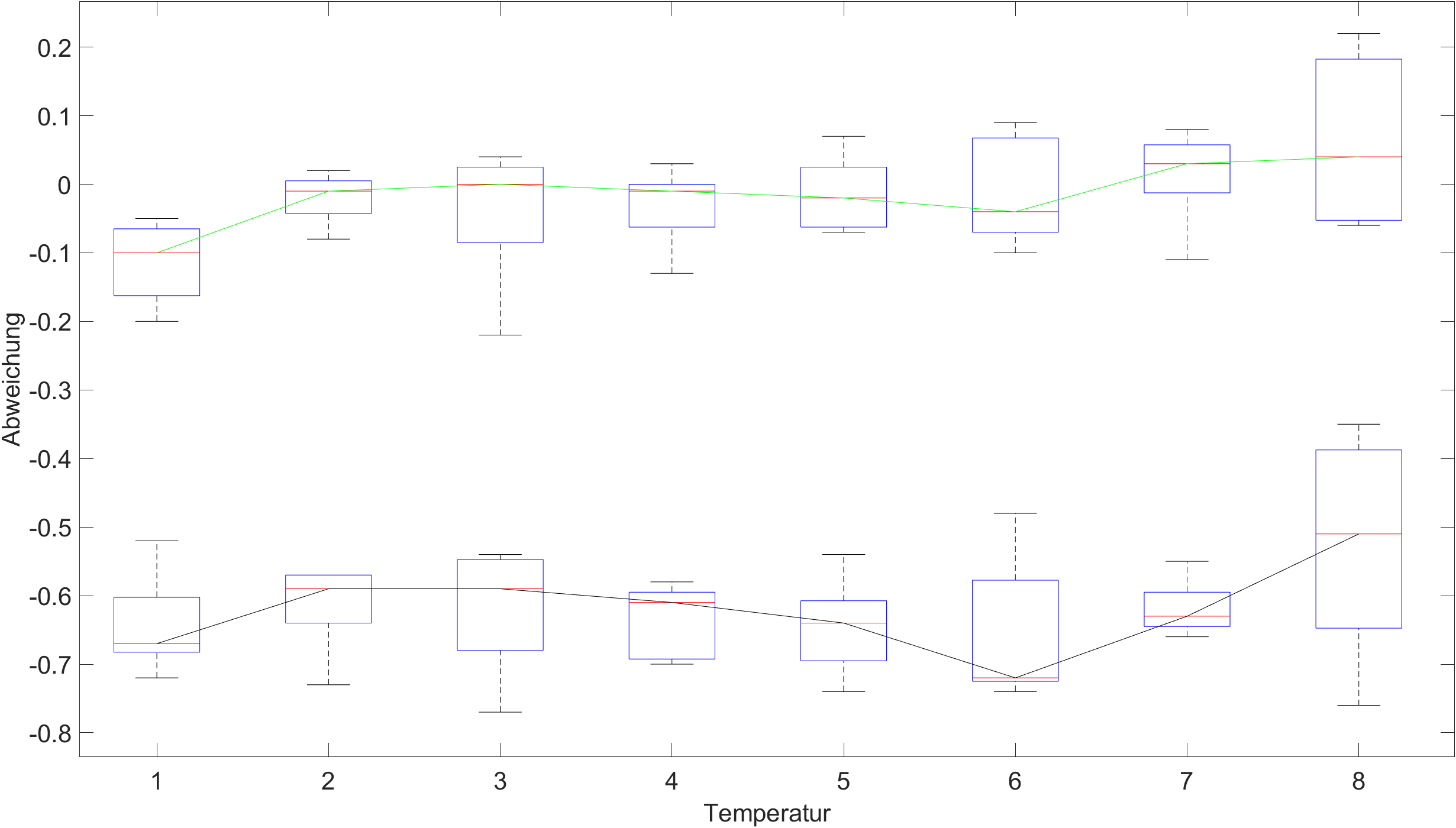 ich bin derzeit am Verzweifeln wie man 2 Messreihen von Temperatursensoren mithilfe von Boxplots darstellen kann. Ich habe 2 Sensoren jeweils 8 Temperaturen (p) ablaufen lassen und die gemessene Temperaturabweichungen zum Idealwert würde ich gerne nun darstellen.