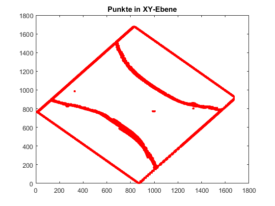 Ich möchte jetzt durch die 2 gekrümmten Linien jeweils ein Polynom mir bestimmen lassen um zum einen den kürzesten Abstand bestimmen zu lassen und zum anderen mir eine Drehmatrix generieren zu lassen, sodass ich die Daten auf eine Ideale Probeansicht mappen kann.
