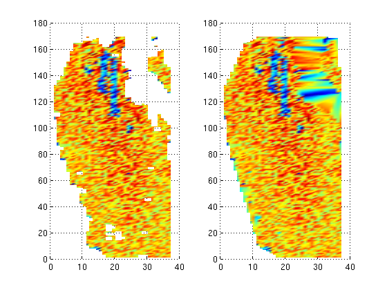 Ich möchte die NaN durch Interpolation wegbringen, so dass ich am Ende eine Matrix habe, mit 'realistischen' Zahlen, die ich dann graphisch darstellen kann bzw. zur Weiterrechnung verwende.