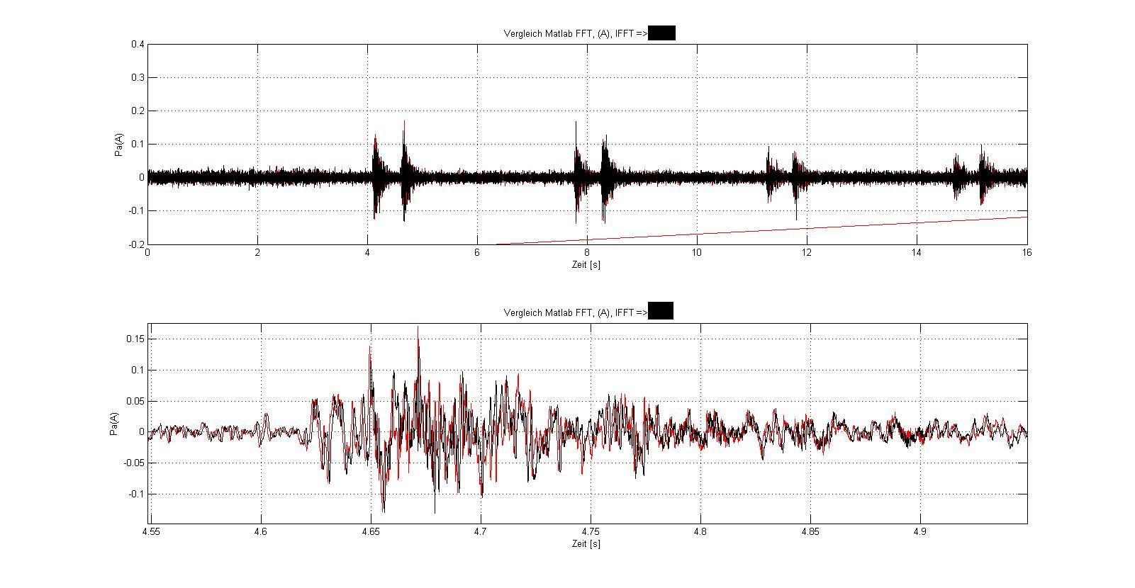 Ich habe mal die beiden Signale nach der ifft mit den unterschiedlichen Filtern übereinander gelegt. Da ist schon ein riesen Unterschied. Oder anders ausgedrückt, es sind trotz identischer Amplitude im Freq.bereich vollkommen unterschiedliche Signale.
