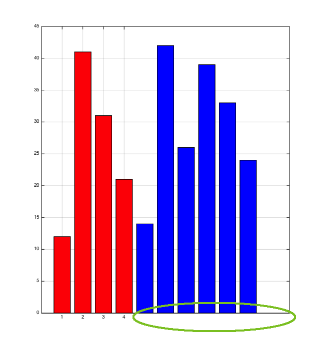 Unten an der x-Achse ist keine Beschriftung und auch keine Skalierung mehr.