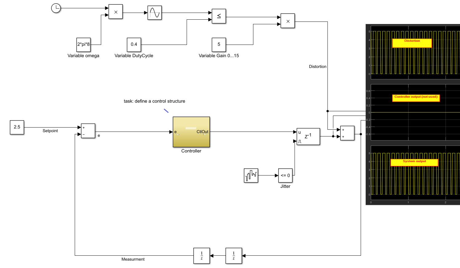 Anbei ein Simulink-Model in dem der Regler fehlt. Das System ist vereinfacht, gibt aber die wesentliche Problematik wieder.