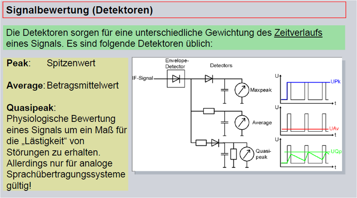 Die Signalfolge soll aber entsprechend nach EMV Standards im Spektrum als PEAK, AVERAGE, oder Quasipeak detektiert werden!