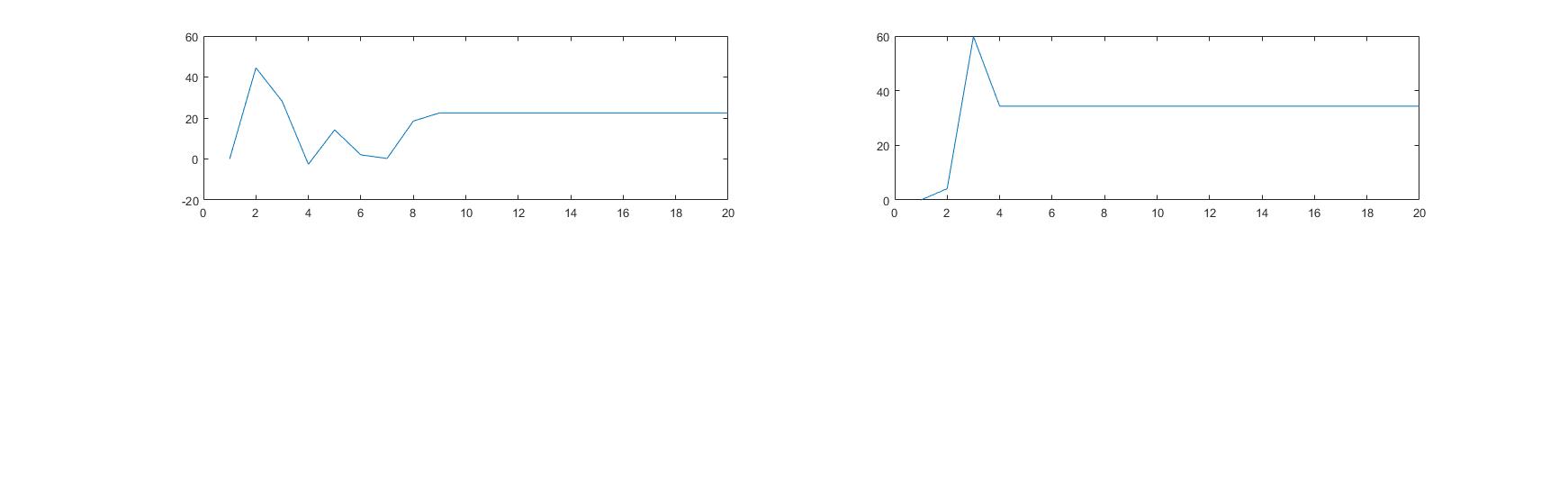 Ich habe eine folge von Zahlen die ich in dem Anhang geplottet habe. Linker plot Variante 1 und Rechter Variante 2. Das sind berechnungsschritte eines Algorithmus'. Man kann erkennen dass die Funktion irgendwann ihren Wert nicht mehr ändert.