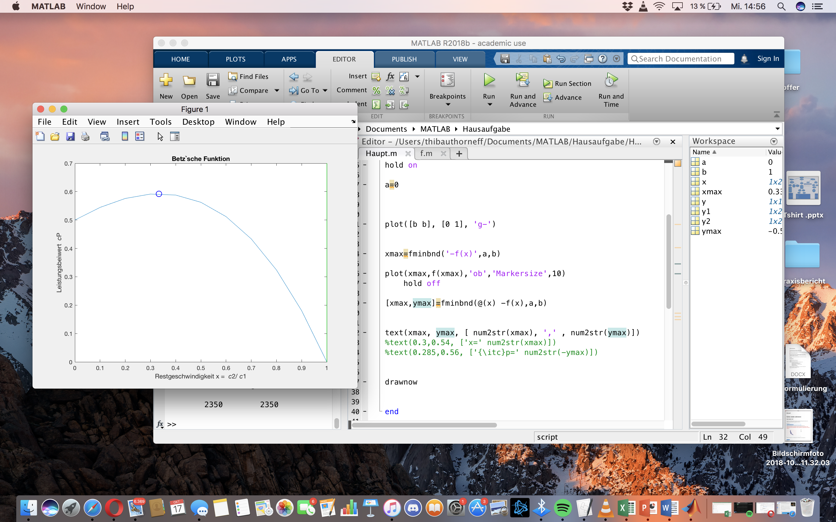 Ich habe mir ein Maxima meiner Funktion ausgerechnet und möchte dieses nun richtig in meiner Figure kennzeichnen. Allerdings weiß ich nicht genau was ich in den Befehl Text() hineinschreiben soll.