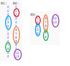 Also ich meinte damit, dass in M1 und M2 die Nuller sozusagen weg fallen und nur alles > 0 verwendet wird. Da es immer einige Nuller gibt und dann wieder einiges > 0 sieht das ja aus wie Blöcke.