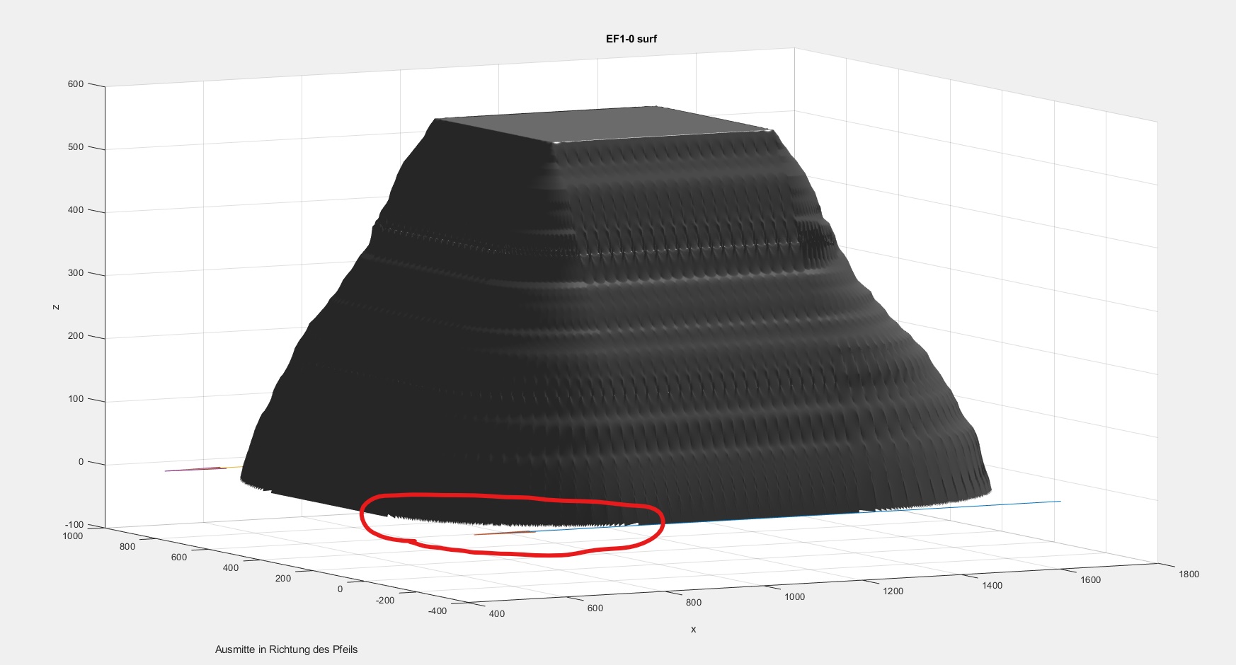 Ich habe das Problem, dass mein Kegel, der mit dem surf-Befehl erstellt wurde, an den unteren Kanten ausfranst (siehe Bild). Kennt da jemand eine Lösung, um das Ganze zu fixen, bzw. weiß jemand, wo das her kommt? Meine Punkte, über die ich die Oberfläche lege weisen keinen, für mich ersichtlichen, Fehler auf. Habe mir die Punkte auch im Einzelnen mit plot3 genau angeguckt...