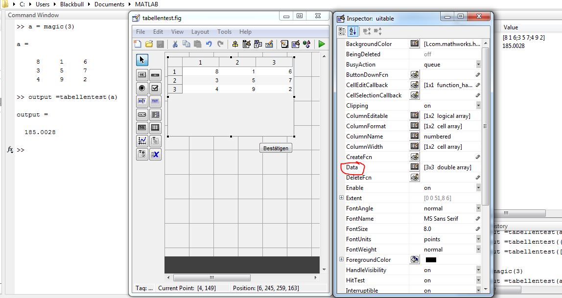% --- Executes just before tabellentest is made visible. function tabellentest_OpeningFcn(hObject, eventdata, handles, varargin) % This function has no output args, see OutputFcn. % hObject handle to figure % eventdata reserved - to be defined in a future version of MATLAB % handles structure with handles and user data (see GUIDATA) % varargin command line arguments to tabellentest (see VARARGIN)