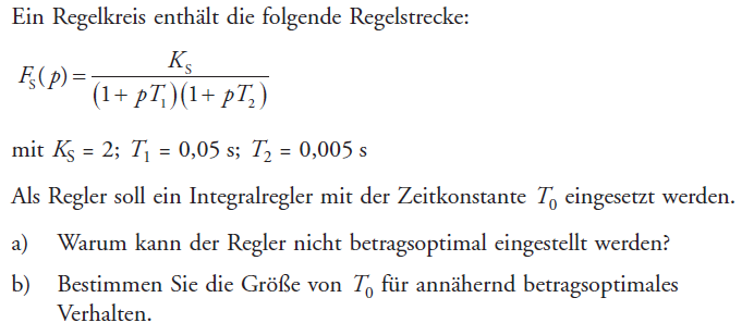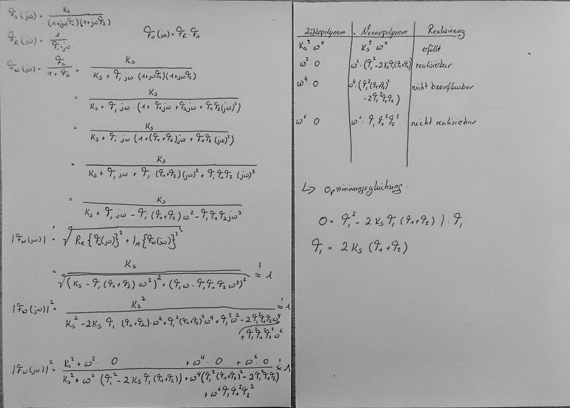 Danke dir nochmal für die Mühe. Also langsam kommt etwas Licht ins Dunkel:) Ich habe jetzt mit meiner Tabelle T0 berechnet und meine Ergebnisse sollten dann auch richtig sein. Was ich jetzt leider immer noch nicht begriffen habe ist die Frage nach 1.a) Wieso kann ich den Regler nicht betragsoptimal einstellen?
