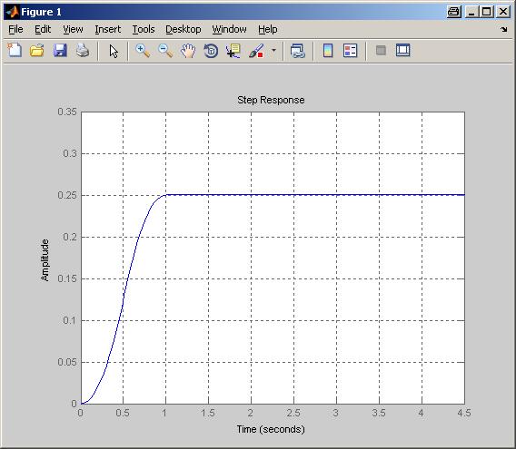Ich habe eine Übertragungsfunktion auf Papier und schau mir in Matlab die Sprungantwort an. Alles wie es sein soll.