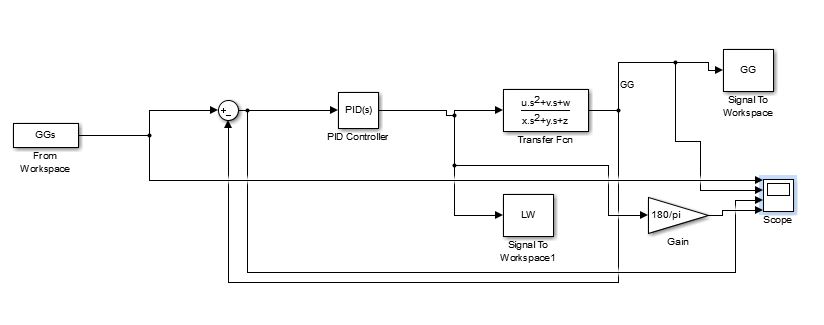 Mein System ist eine Regelschleife die als Eingang einen Sollverlauf (MAtrix mit Zeit in 1. Spalte / Werte in 2. Spalte) hat. Der Regler soll mir den Eingang für die Übertragungsfunktion ausgeben.