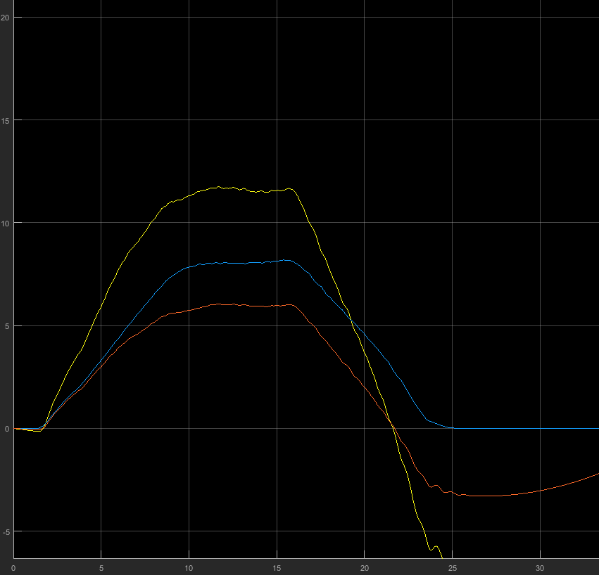Ab da, wo Dein Fahrzeug eigentlich steht, scheint die Beschleunigung noch linear zuzunehmen. Rotiert Dein Koordinatensystem da irgendwie weiter, obwohl es eigentlich still stehen sollte?