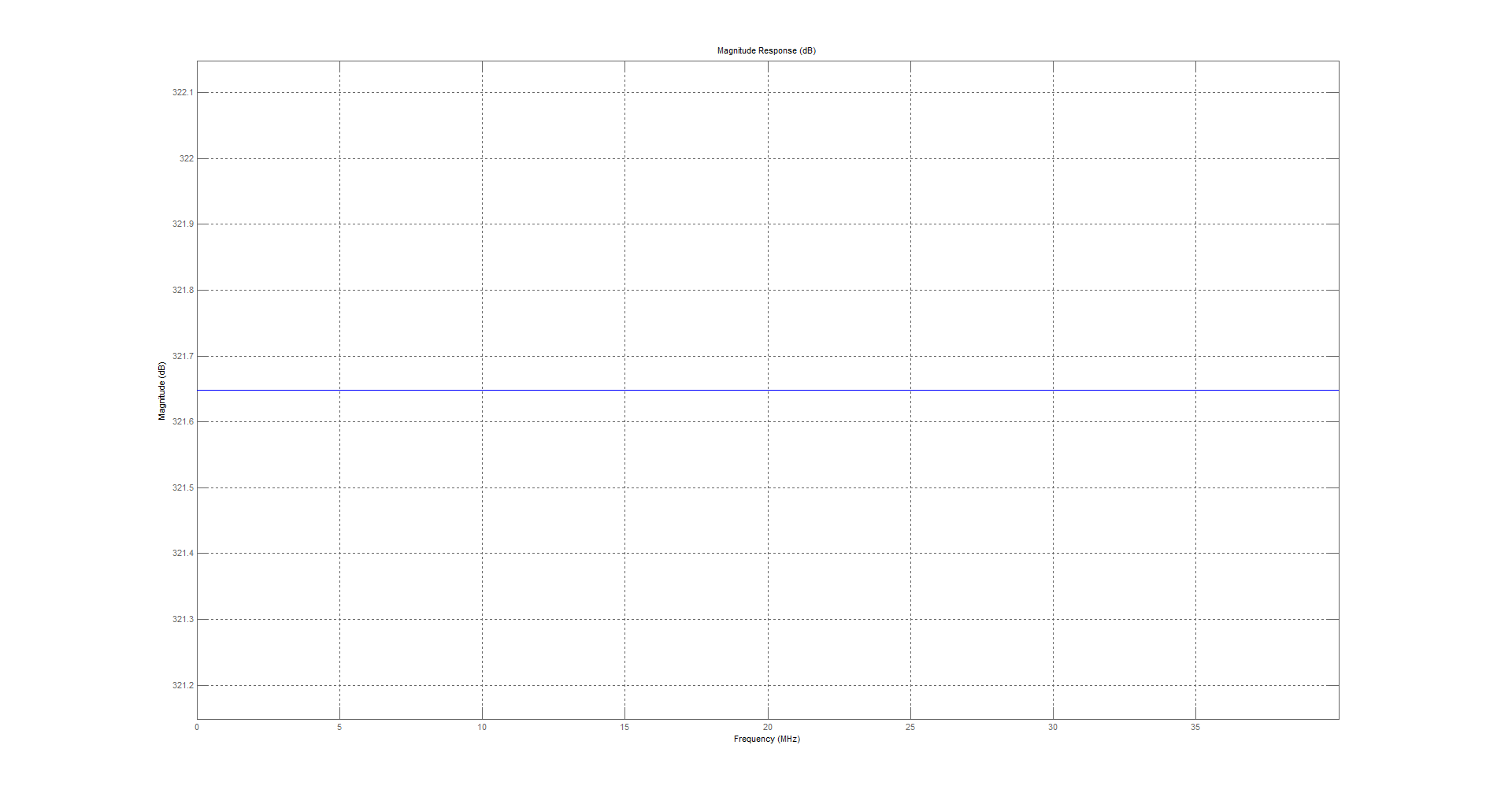Der Filter hat 2. Ordnung und wie oben schon geschrieben eine Grenzfrequenz von 17.5 MHz. Diese Codezeilen habe ich von der Dokumentation. Aber das Bodediagramm (welches mit der letzten Zeile erzeugt wird), sieht nicht wie erwartet aus...ich sollte ja bei -3 dB genau 17.5 MHz (oder umgerechnet 109.955 rad/s) erhalten.