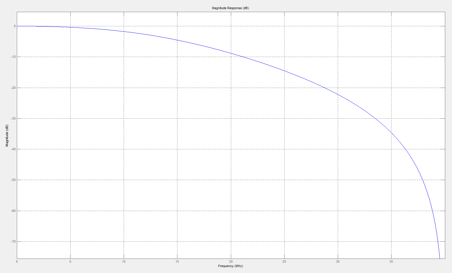 Ich glaube, ich habe es fast geschafft! stem plot sieht nun schon viel besser aus und auch das Bodediagramm (fvtool) zeigt nun FAST den erwarteten Slope. Allerdings habe ich bei -3 dB nun ca. 12.5 MHz statt der vorgegebenen cut-off Frequenz von 17.5 MHz...?