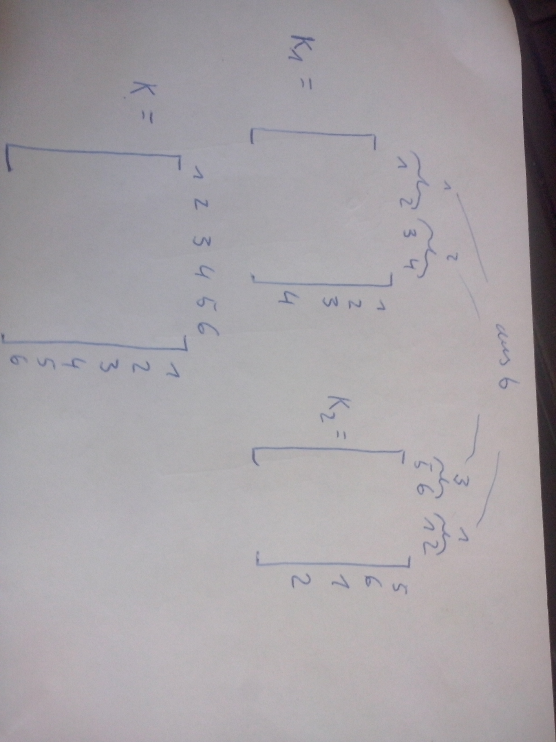 dazu gehört von b=[ 3 1] (3= 5 und 6, 1=1 und 2)diese Zahlen geben jetzt gleichzeitig vor, in welcher Zeile bzw. Spalte die Elemente in die Hauptmatrix K geschrieben werden müssen.