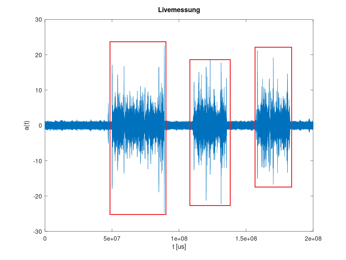 Wenn du dann einen alarm_flag==true bekommst musst du natürlich wieder zurückspringen um den Beginn des Blocks zu finden. Denkbar wäre hier ein Rücksprung um jeweils 5e6 bis du wieder aus dem Block raus bist, dann 2.5e6 nach vorn bis du wieder drin bist etc. bis du mit der Präzision zufrieden bist. Nach vorn das gleiche Spiel um das vordere Ende des Blocks zu finden.