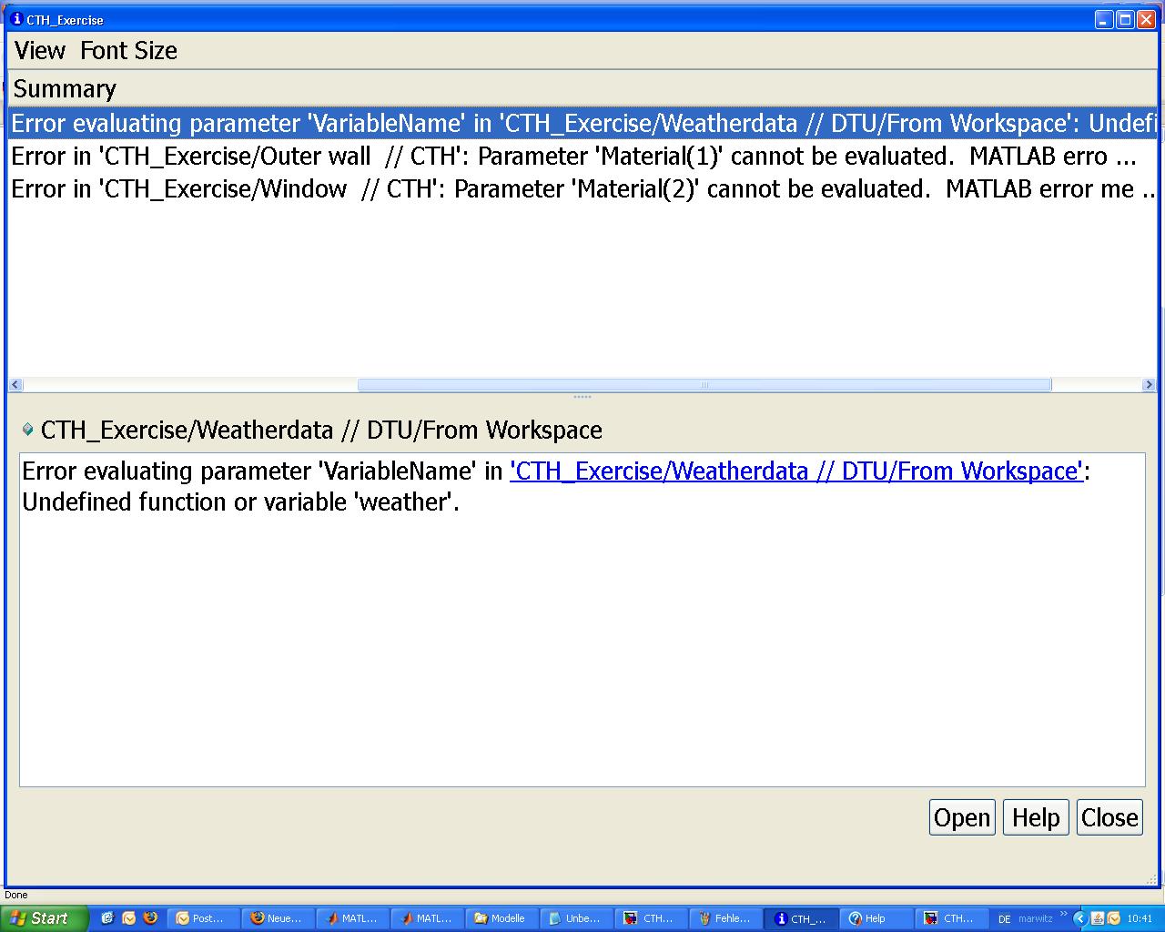 Wenn ich nun die Simulation starte dann bekomme ich diese Fehlermeldungen: