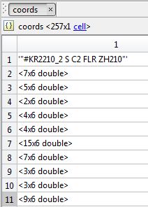 Beim tabellarischen Zusammenfügen von Cell und Double-Werten, werden die Double-Werte nicht mehr "ausgeschrieben" sondern nur noch als bspw. 118x6 double-array angezeigt. Ich muss also nochmal draufklicken, damit ich alle beinhalteten Koordinaten sehen bzw. auswerten kann.