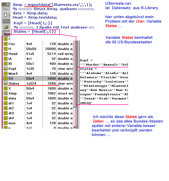ich habe in Matlab mit importdata einen Datensatz aus der R-Library eingelesen ... USarrests.csv...