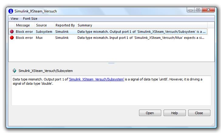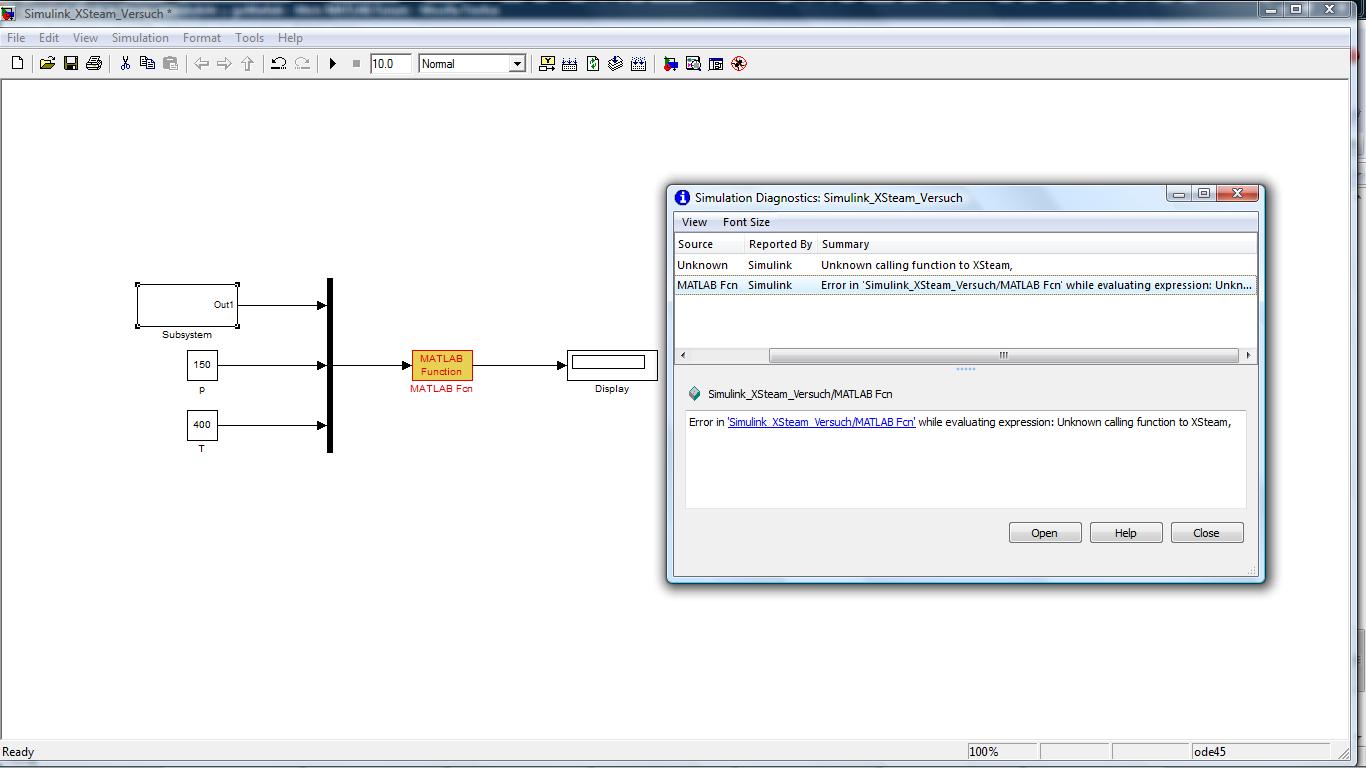 Und als weiter Angabe noch: In der Maske des Function Blockes steht XSteam(u(1),u(2),u(3)), wo bei wie gesagt im m-File steht XSteam(fun,In1,In2).