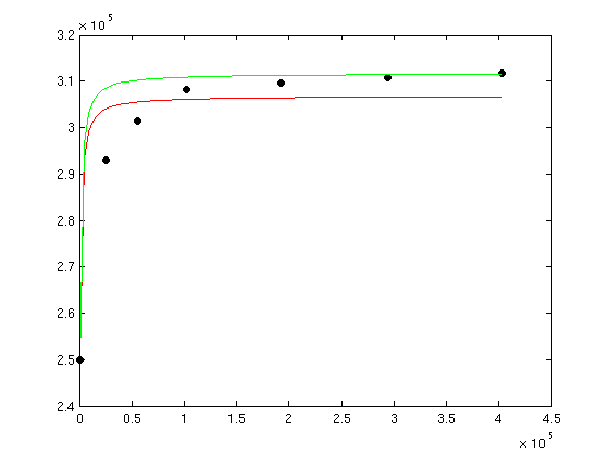 Ich bin verusche vergebens eine geiegnete Funktion in meine Datenpunkte zu fitten. Die Datenpunkte haben die Form einer Funktion die gegen einen gewissen Grenzwert konvergiert. (Grenzwert ist bekannt falls das hilft)