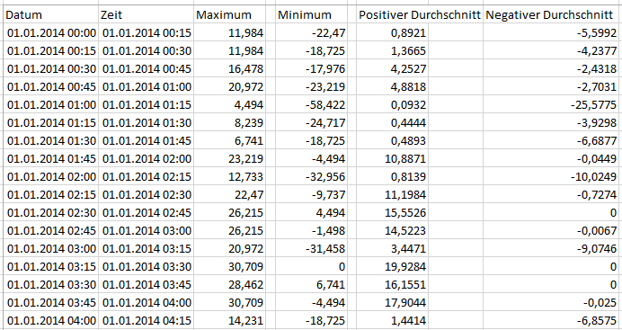 Bei den Daten handelt es sich um Leistungsbezüge die im viertel Stundentakt gespeichert wurden. Ein Bild mit einem Ausschnitt wurde hinzugefügt.