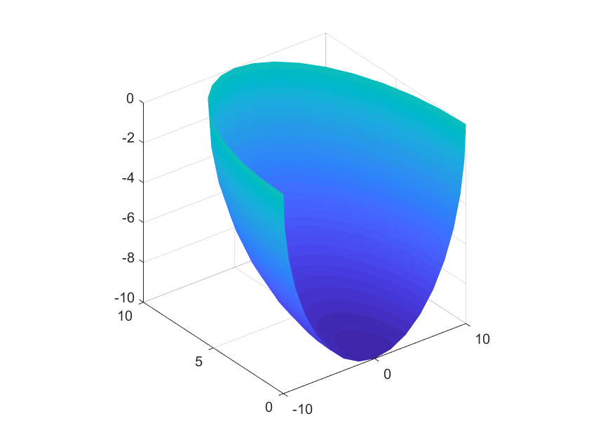 Und bei einem anschließenden Plot fehlt die halbe Fläche. (Es wird nur eine Viertel anstatt einer Halbkugel gezeichnet).