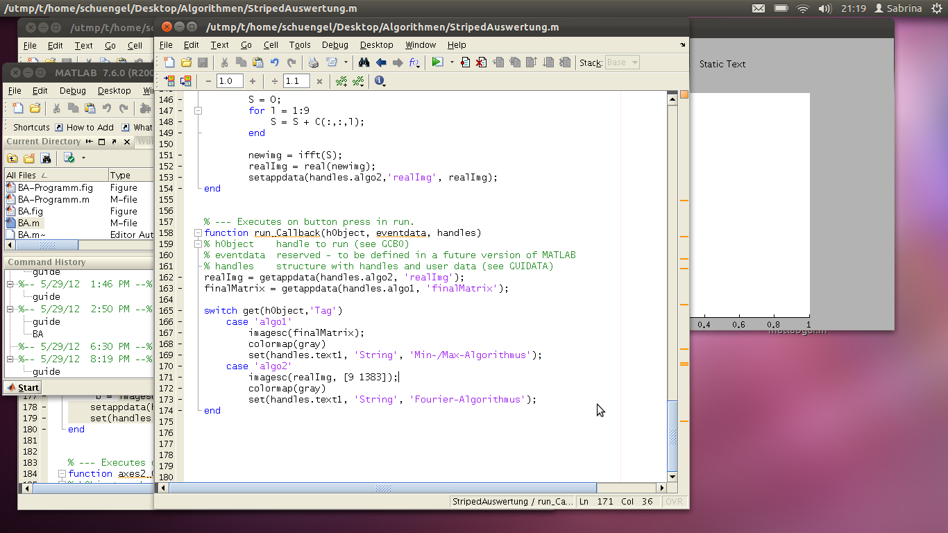 Falls in MATLAB, läuft der Ablauf auch innerhalb von MATLAB, aber außerhalb der GUI? Ist sicher, dass auch wirklich der gleiche Algorithmus mit der gleichen Datei (und gleichem Dateiinhalt!) verwendet wird?