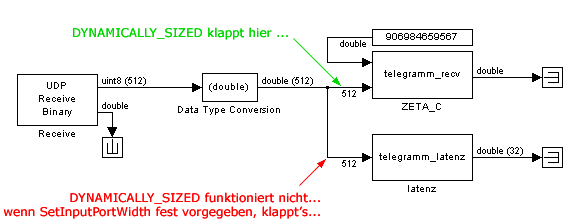 Wie sähe der Code für die S-Funktion "telegramm_recv" aus ? Also einer S-Funktion mit 2 Eingangsports: einem mit festgelegter Breite und einem mit DYNAMICALLY_SIZED.