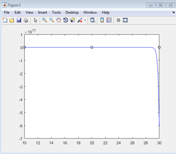 Bitte poste die Daten, den Code und eine Erklärung, was genau "Abschmieren" hier bedeutet. Ist sind ja wohl doch aus mathematischer Sicht die korrekten Werte, oder denkst Du, dass Matlab sich hier verrechnet?