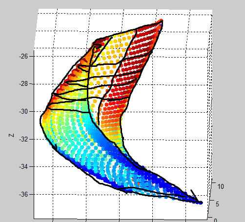 Ich würde gerne die Kontur einer Verzahnung darstellen. Hierbei habe ich schon versucht mich mit meshgrid für X und Y, und griddata für Z ranzuarbeiten. Die Ausgabe weicht aber deutlich von meiner Vorstellung ab.