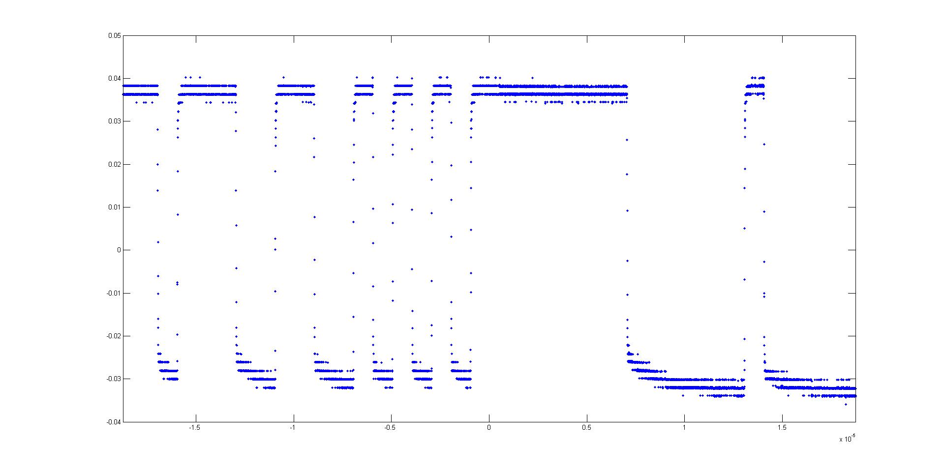 Die Daten wurden von einem Oszilloskop eingelesen bei 4 Gigasamples/s, für ein 1 Mhz_Signal. Spitze-Spitze beträgt 100 mV.