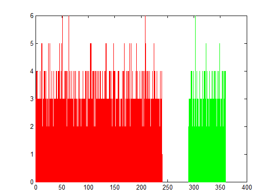 u(t+1) = u(t) + r(t); % Zeitreihe Wind end % negative Daten ausmerzen