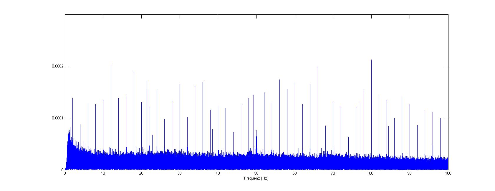 Dabei ist sehr auffällig, dass es immer einen Peak bei genau 2,4,6,8,10....Hz gibt. Aso immer den Vielfachen von 2.