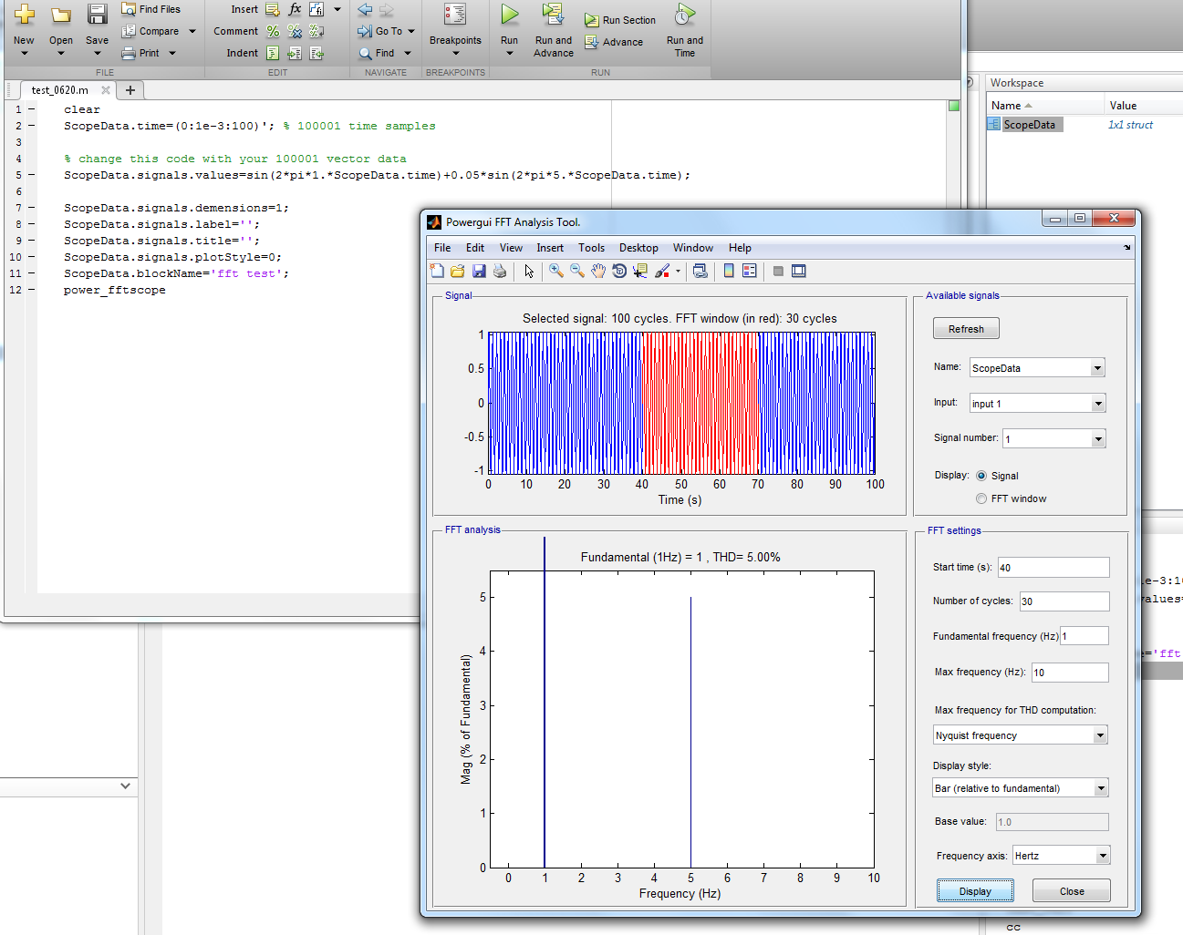 wenn du nur den Plot brauchst, ist PowerGUI FFT analysis tool schon genug und bequem. Wenn deine Dateien in workspace vorhanden sind, typst du einfach die Command power_fftscope , um den Tool zu öffnen.