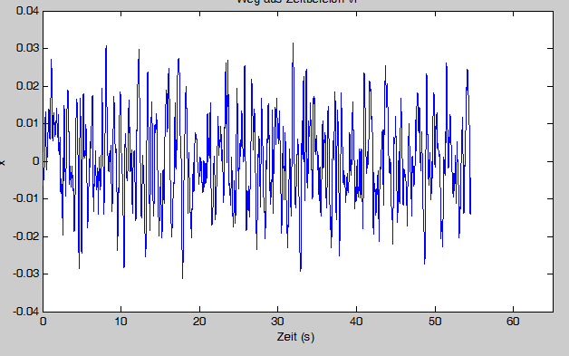 Wenn ich das ganze mit Messdaten mache kommen lediglich noch Filter hinzu, die zum einen die Rohdaten einmal filtern und nach jeder nummerischen Integration filtern um die offsets rauszurechnen (untere Frequenz 0.5Hz). Das Ergebnis aus dem Zeitbereich sieht auch brauchbar aus. Das aus dem Frequenzbereich schwingt nichtmal um Null?!
