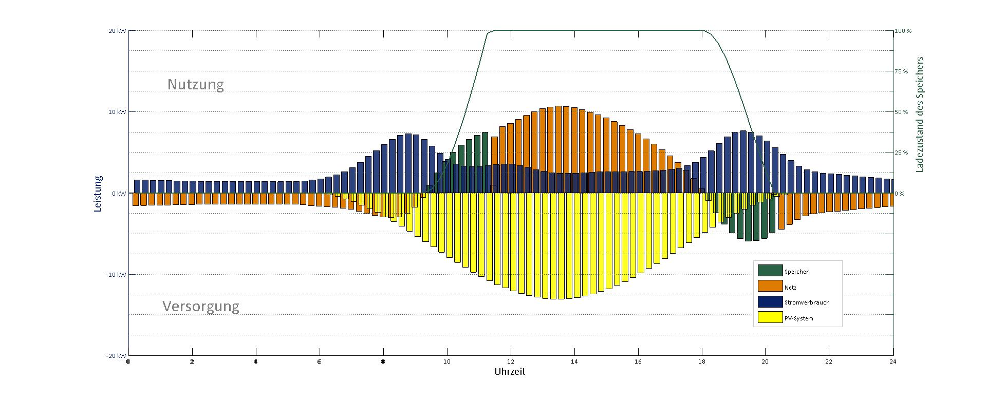 Also die Balkendarstellung habe ich gewählt weil ich nur Daten in Viertelstundenauflösung habe und keine stetige Funktion. Da sehen bei 24*4 Werten meiner Meinung nach Balken besser aus. Dabei sind die Farben völlig nebensächlich, da ich die eh später nochmal uniform mit einer colormap für alle Grafiken in meiner Arbeit ändere.