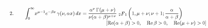 F=((alpha)^v*gamma(u+v))/(v*(alpha+beta)^(μ+v)^2)*mfun(F1;1;μ+v;v+1;alpha/(alpha+beta))