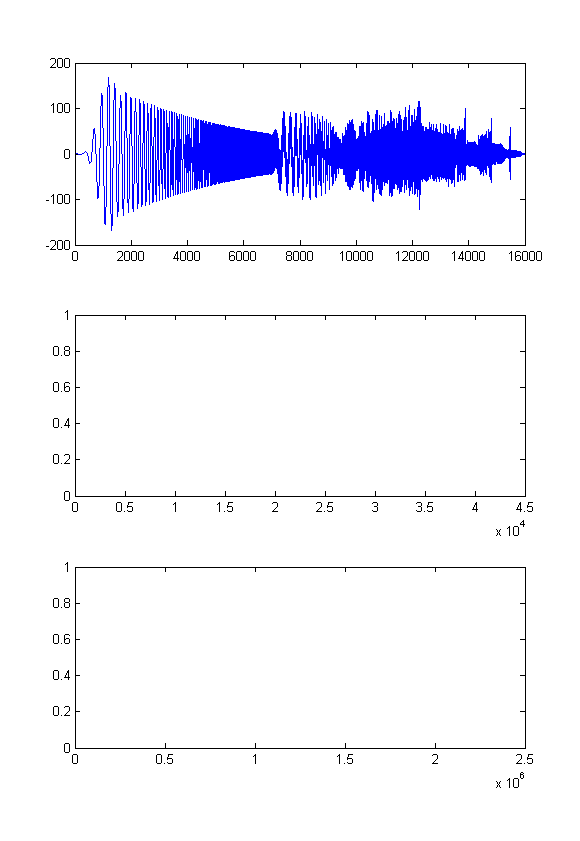 | Übersicht; oben faltung, in der mitte Transformation ohne und unten mit zeropadding |