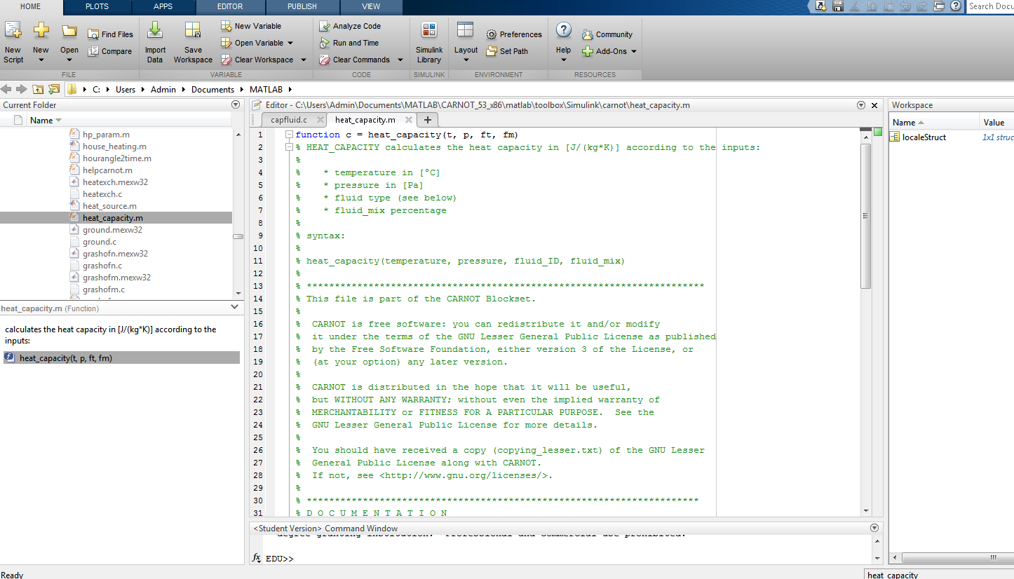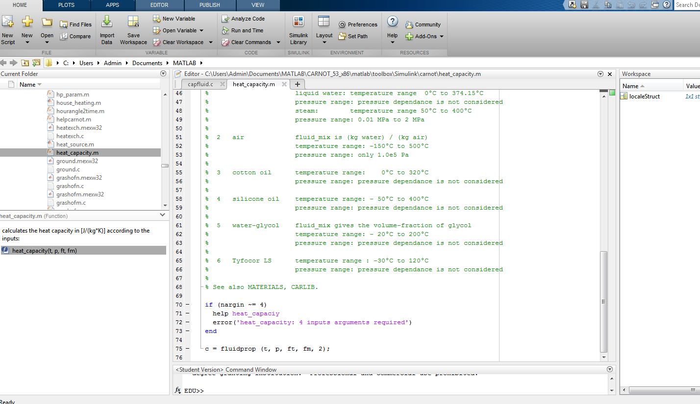 Das kommt beim Öffnen von "heat_capacity.m" im Editor. Fehlt da was? Da steht ja nur ganz unten beim Bild HC2 was mit if...help... und keine Funktionen.