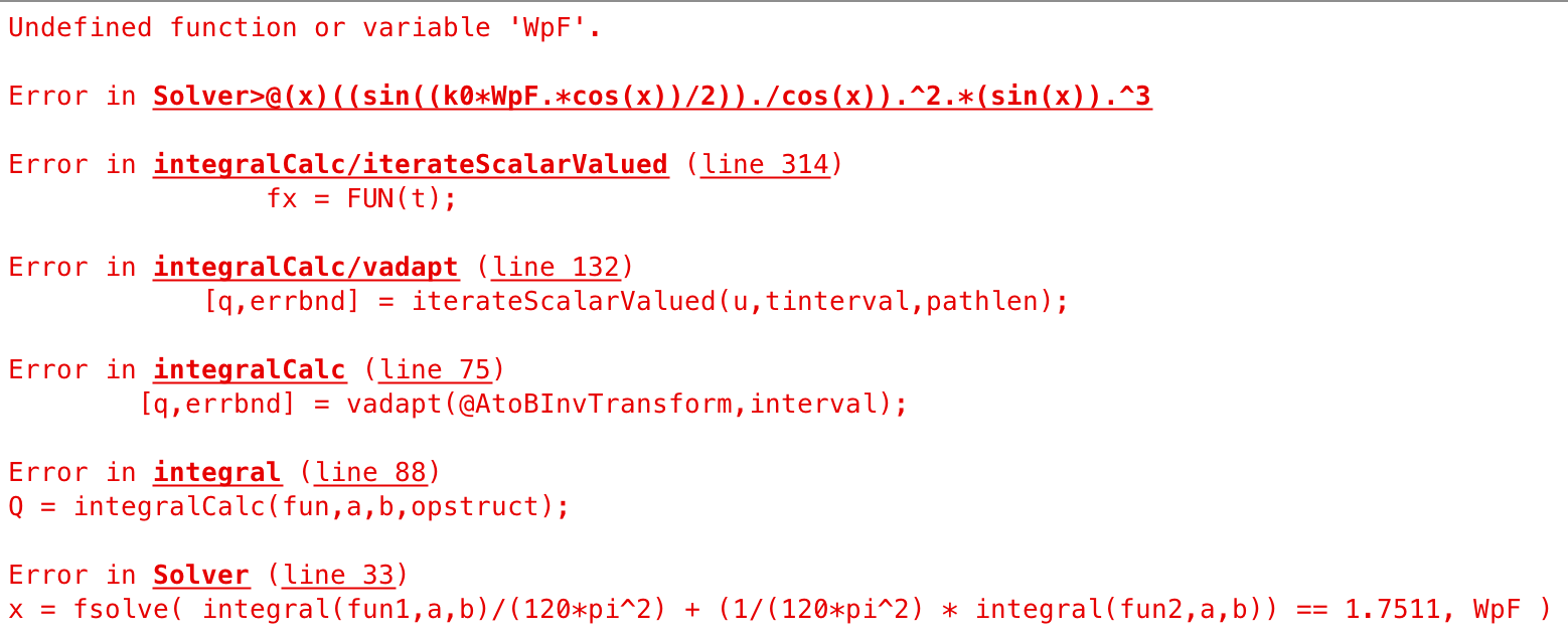 fun2 = @(x) ((sin(((k0*WpF.*cos(x))/2)))./(cos(x))).^2.*sin(x).^3.*besselj(0,k0*Lp.*sin(x));
