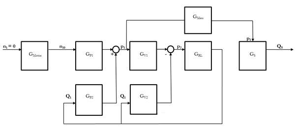 Gesucht ist die Funktion G(s)=QS/n1, also Qs als Ausgang und n1 als Eingang. Folgende Schritte habe ich bereits durchgeführt: