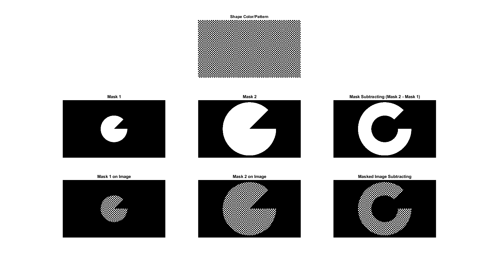 Ich erstelle ja zu Beginn eine Maske, die ein Kreis oder Kreisring ist. Dann erhalte ich eine 1920x1080 Matrix in der meine Form aus 1 und der Hintergrund aus 0 besteht. Nun könnte ich mir die Indizes meiner 1en von der Form zB als Bildinfo.txt abspeichern. Für eine zweite Form mache ich das gleiche. Möchte ich nun Form 1 und Form 2 kombinieren erstelle ich eine neue Matrix 1920x1080 aus Nullen (Mein Zielbild), setze die Bildpunkte meines ersten Bildes auf die Indizes 1 meiner ersten Form. Danach setze ich das zweite Bild auf die Indizes 1 meiner zweiten Form und dort wo ich eine 0 habe, gebe ich dem Hintergrund meinen gewünschten GW.