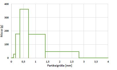 x-Wert ist jeweils Maschenweite min und max des Siebes