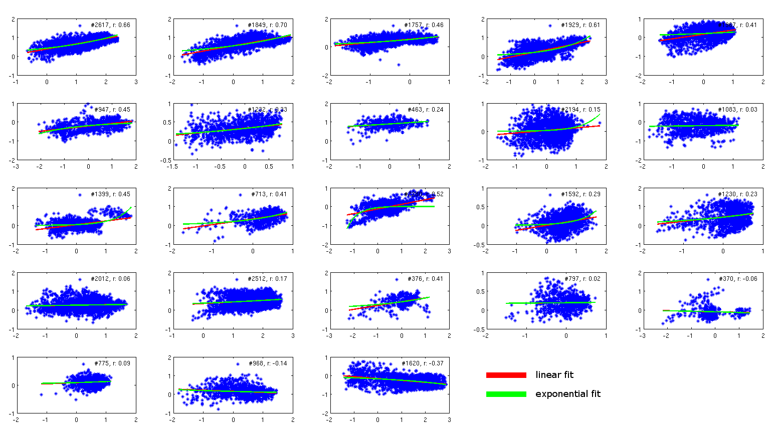 Now I want to know how these two data-sources correlate, so e.g. which of these ROIs show a linear relationship in X and Y, which a exponential/logarithmic/... relationship.