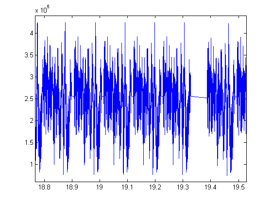 Ich schreibe momentan ein Signal auf die Soundkarte durch Simulink mittels ToAudioDevice. Wie im Anhang ersichtlich bekomme ich jedoch nach ca. 19s immer solche flachen, ungewollten Signalstücke rein, die garnicht da sein sollten. Wisst ihr an was das liegen kann?