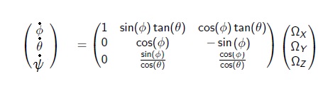 Wie realisiere ich das in Matlab um nach der Integration phi, theta und psi zu erhalten? Ich habe einfach die rechte Seite Matrix mal Vektor gelöst und dann die drei Gleichungen untereinander geschrieben.