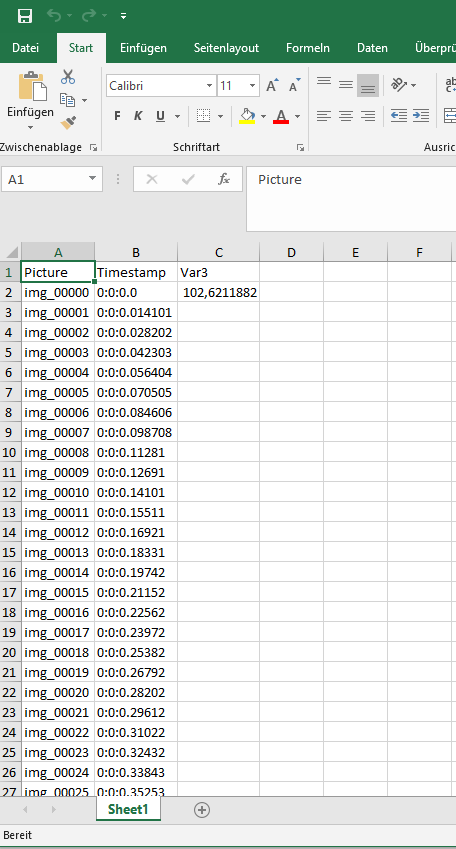 ich wende mich an dieses Forum, da ich eure Hilfe bei meinem letzten Schritt zur Lösung der gestellten Aufgabe benötige. Mein Ziel ist es einen Bereich von mehreren Bildern, die sich in einem Ordner befinden, zu markieren und festzulegen, an dessen Ende ich den Intensitätswert des markierten Bereichs berechne und als ".xlsx" Daten speichern kann. Ich werde erklären wie das funktioniert: Ich habe eine grafische Benutzeroberfläche (GUI) mit dem Namen "OACM_1_length_width" erstellt, in der ich einen Ordner mit z.B. 200 Bildern auswähle, indem ich auf "choose folder" klicke, dann den Bereich markiere, indem ich auf "choose area" klicke, und dann den Bereich festlege, indem ich auf "set area" klicke. Man sieht dann verschiedene Ansichten des ausgewählten Bildes in der GUI und den "Intensitätswert" des ausgewählten Bereichs jedes Bildes (z.B. für 200 Bilder in einem Ordner hat man 200 verschiedene Intensitätswerte). Durch Klicken auf "Save intensity values" kann man die Parameter "Bildnummer, Zeitstempel, Intensitätswert (Var3)" als ".xlsx"-Daten speichern. Die Anzahl der Bilder und der Zeitstempel werden in der .xlsx-Datei gespeichert und ausgegeben, aber nur der erste Intensitätswert des ersten Bildes wird gespeichert und angezeigt (siehe beigefügter Screenshot). Die restlichen Intensitätswerte werden nicht angezeigt. Der Intensitätswert, mit der Intensitätswert-Variable = "meanGL", wird in der Funktion (Zeile 393) "function showArea(handles, pic)" berechnete und der Callback-Funktion zum Speichern der Werte (Zeile 2662). Wie kann ich in die .xlsx-Daten alle Intensitätswerte jedes ausgewählten Bildes aufnehmen und speichern und nicht nur den ersten Intensitätswert des ersten Bildes anzeigen?