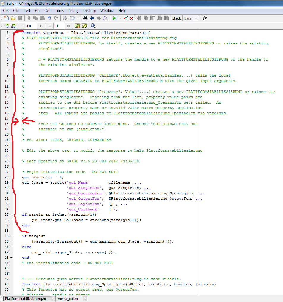 2. Alle Funktionen im m-File starten mit function und werden nicht mit end vom user geschlossen (ist standardmäßig bei GUIDE so)